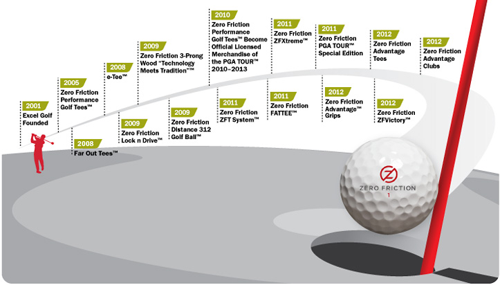 Zero Friction™ was founded in 2001, originally under the name of Excel Golf Products, Inc. with the primary goal of offering high quality, performance products with innovative technological advancements. In 2005, the Zero Friction™ Performance Tee was introduced, making Excel Golf the first in the industry to make the rarely thought of golf tee an important aspect of the game. What sets Zero Friction™ Tees apart is our unique invention of a 3-prong and 4-prong patented design that significantly reduces the contact area between the tee and ball by 66%, leading to longer, straighter drives. Less Resistance = More Distance!