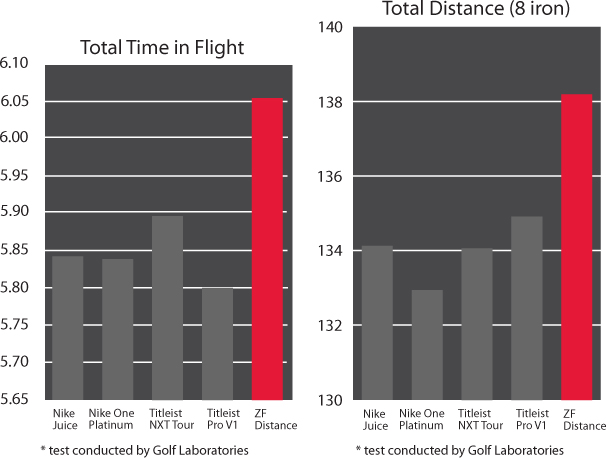 Test results show the ZF Distance 312 travels up to 5 yards longer than the competition.